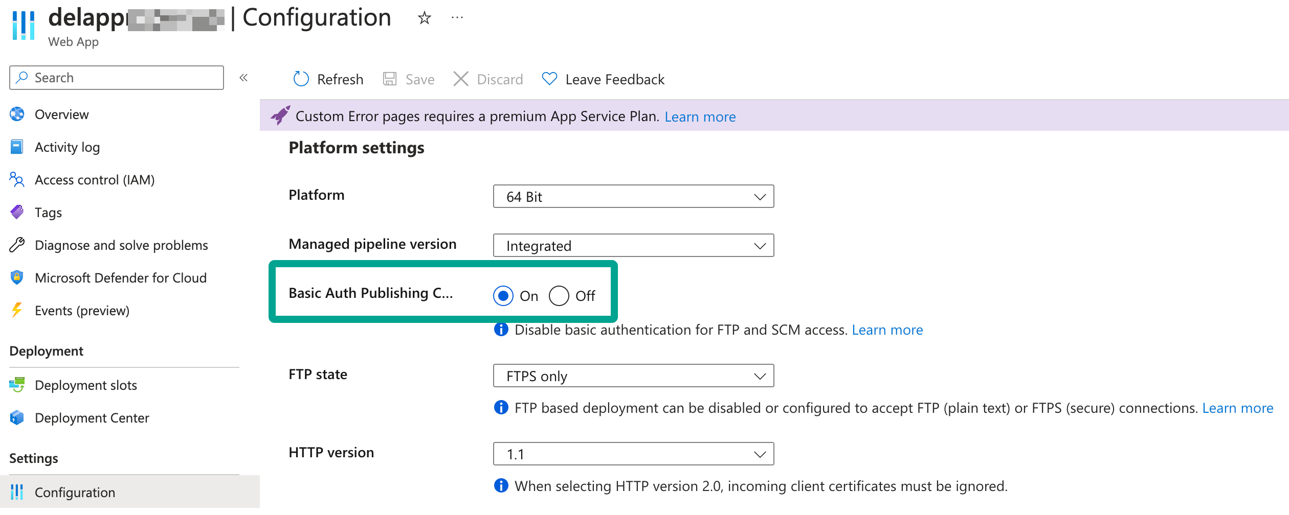 Download Publishing Profile is disabled / Grayed in Azure App Services